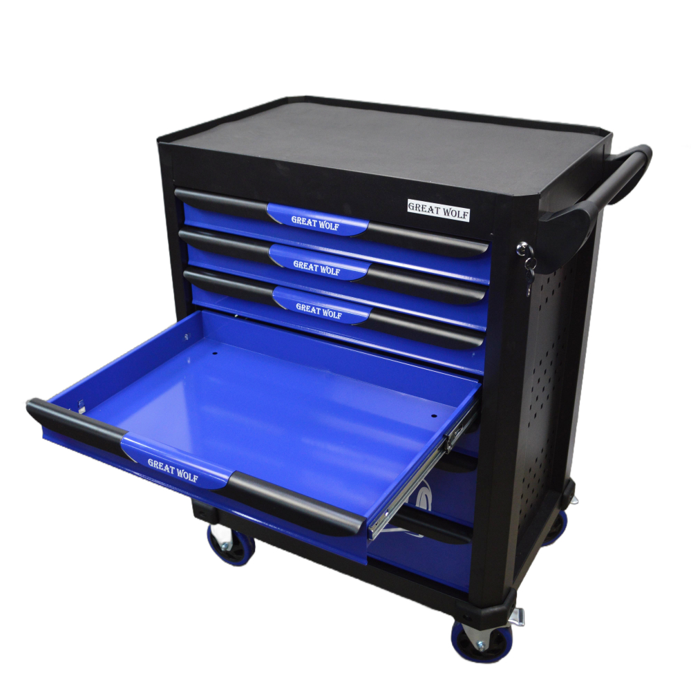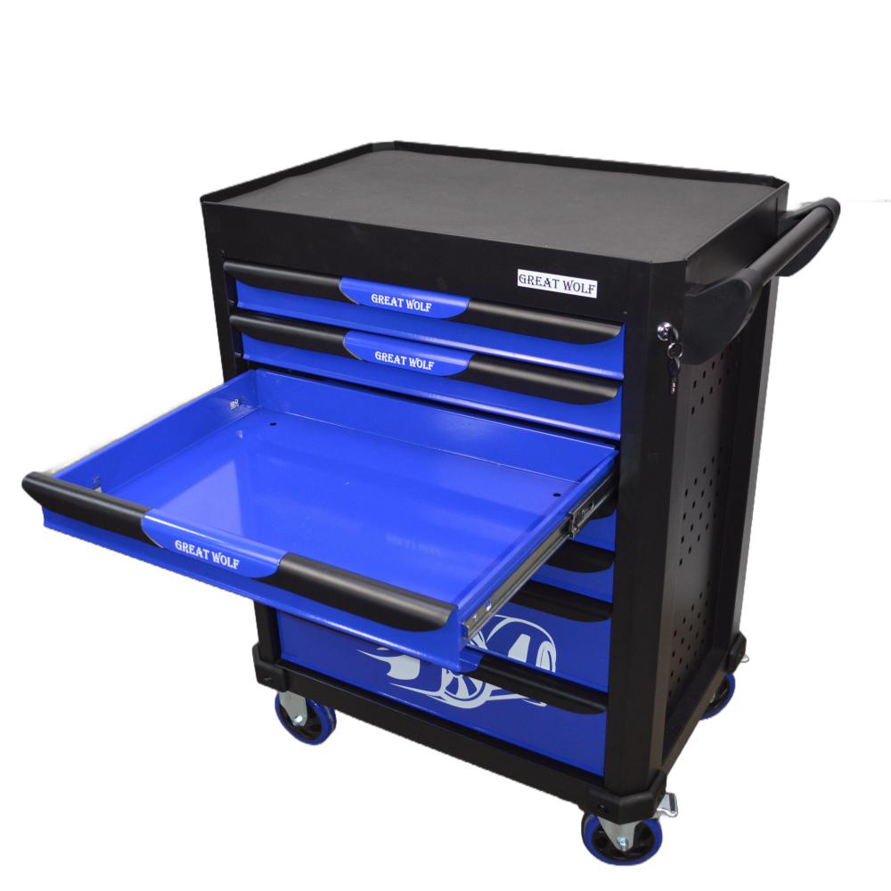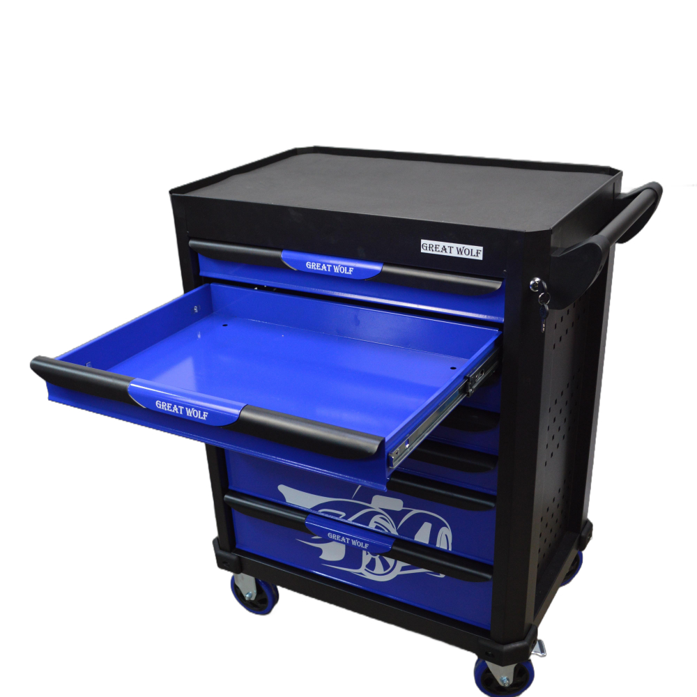 Инструментальная тележка Great Wolf GW-7ST Blue с 7 ящиками предназначена для удобного хранения и транспортировки инструмента по ремонтной зоне.