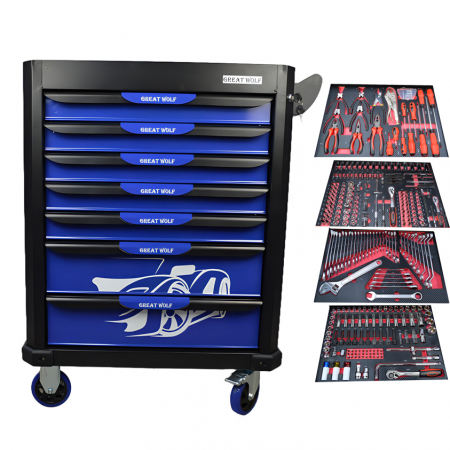 Инструментальная тележка Great Wolf GW-7ST2 Blue с 7 ящиками и инструментом (324предметов) предназначена для удобного хранения и транспортировки инструмента по ремонтной зоне.