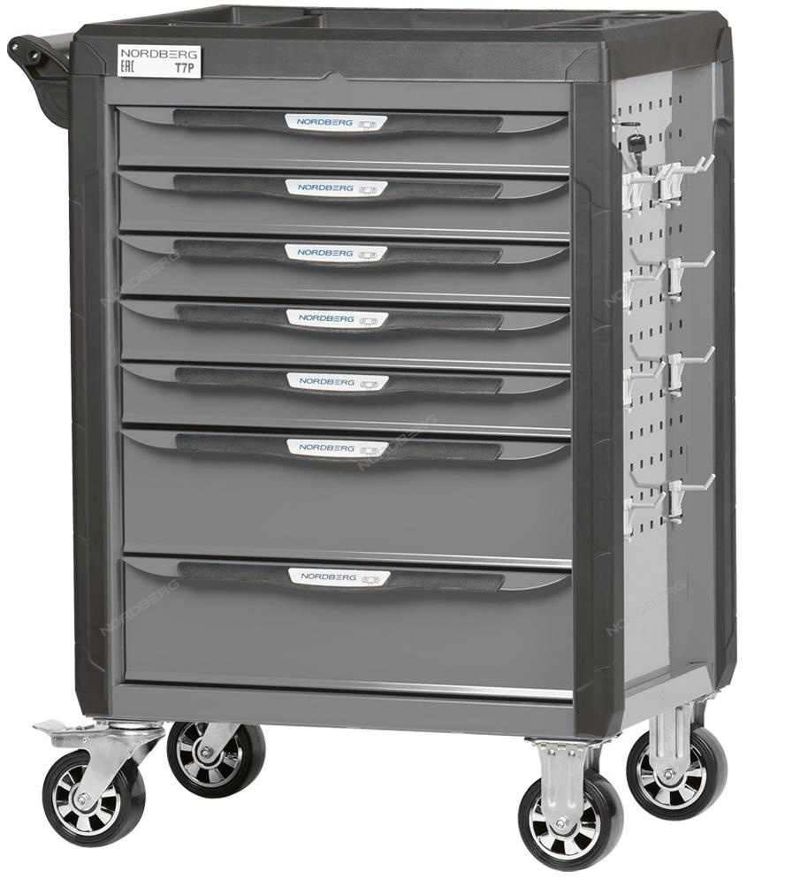 - Одна из боковых стенок тележки имеет перфорированную панель, для крепления на ней крючков для инструмента. Крючки идут в комплекте с тележкой.