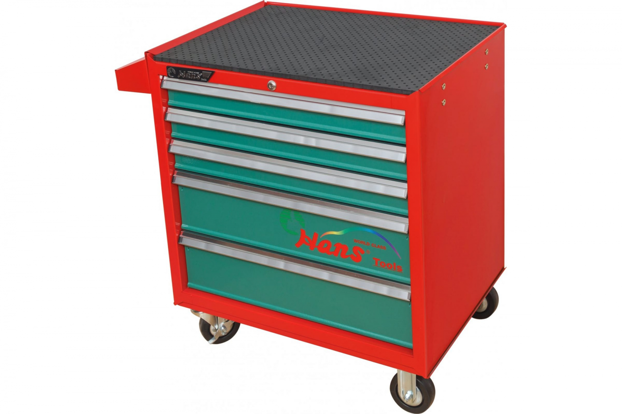 Прочный корпус инструментальной 5-и ящиковой тележки Hans 9917HQ выполнен из цельного листа металла;