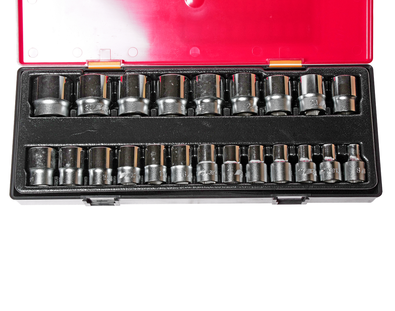 Артикулы JTC-43908-32: 12-гранные: 8, 10, 11, 12, 13, 14, 15, 16, 17, 18, 19, 20, 21, 22, 23, 24, 25, 26, 27, 29, 30, 32 мм. - 22 шт.