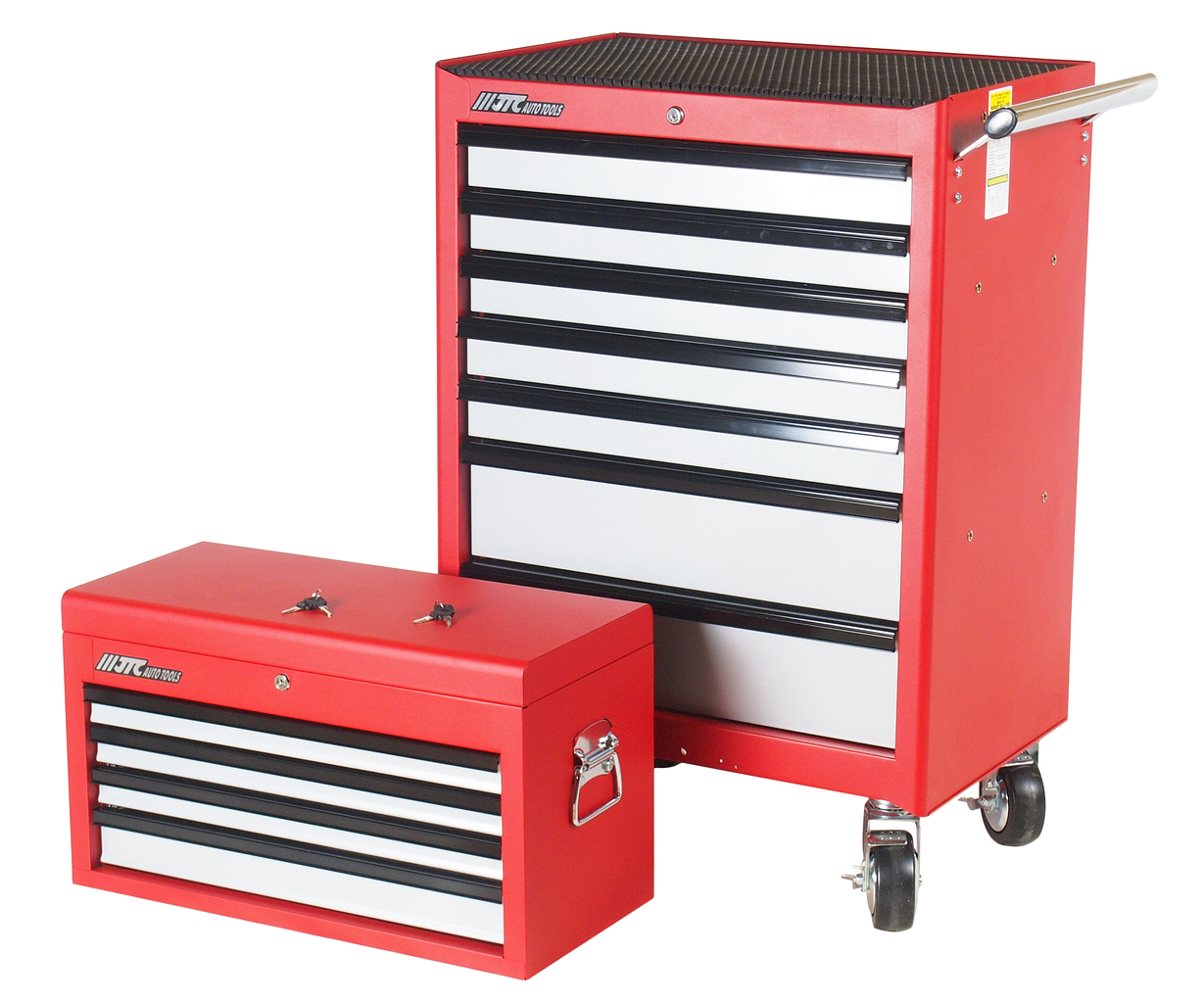 7 секций: пять плоских (580х377х59 мм.) и два глубоких (580x377x138 мм.) выдвижных ящика обеспечивают возможность размещения большого количества рабочего инструмента.