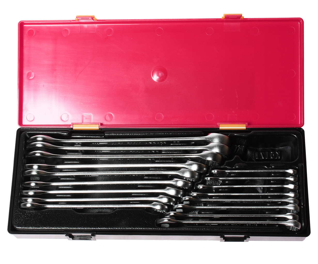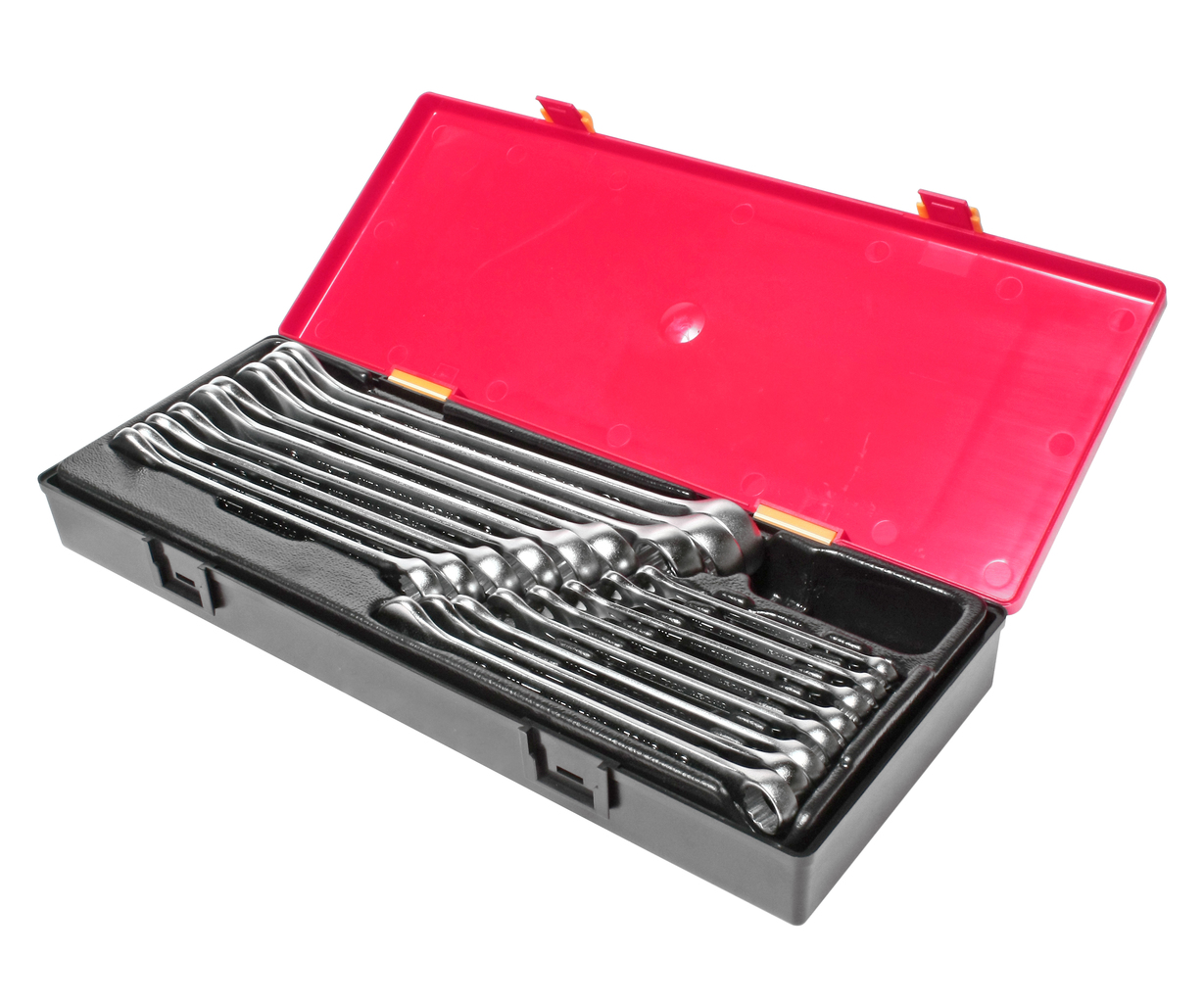 Артикулы JTC-АЕ2406-АЕ2423: ключ рожково-накидной (европейский стандарт) 6 мм, 7 мм, 8 мм, 9 мм, 10 мм, 11 мм, 12 мм, 13 мм, 14 мм, 15 мм, 16 мм, 17 мм, 18 мм, 19 мм, 21 мм, 22 мм, 23 мм — 17 шт.