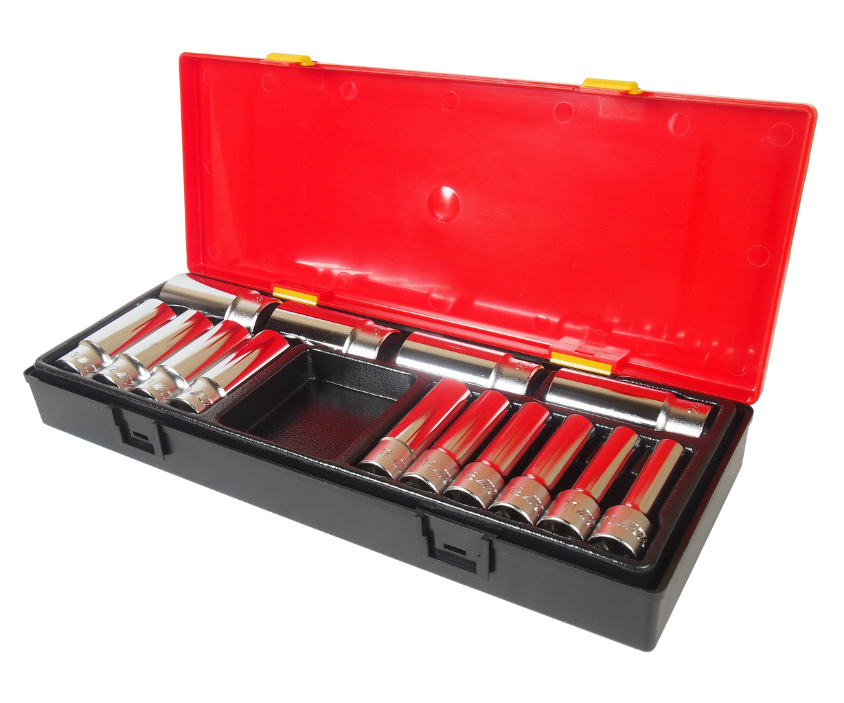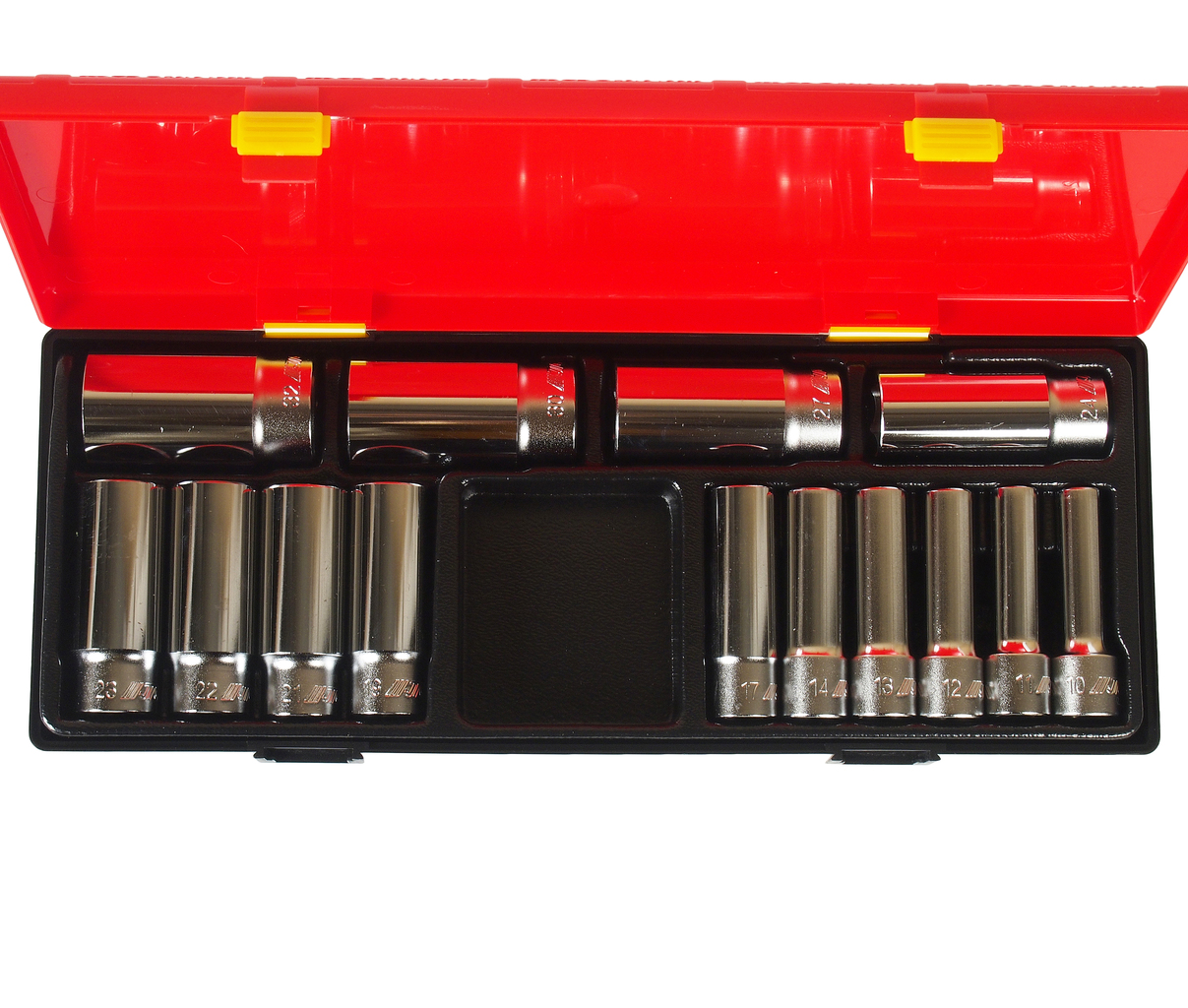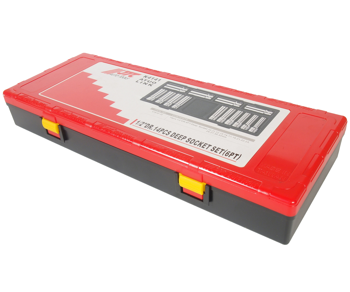 Артикулы JTC-47610-32: 6-гранные головки глубокие: 10, 11, 12, 13, 14, 17, 19, 21, 22, 23, 24, 27, 30, 32 мм. - 14 шт.