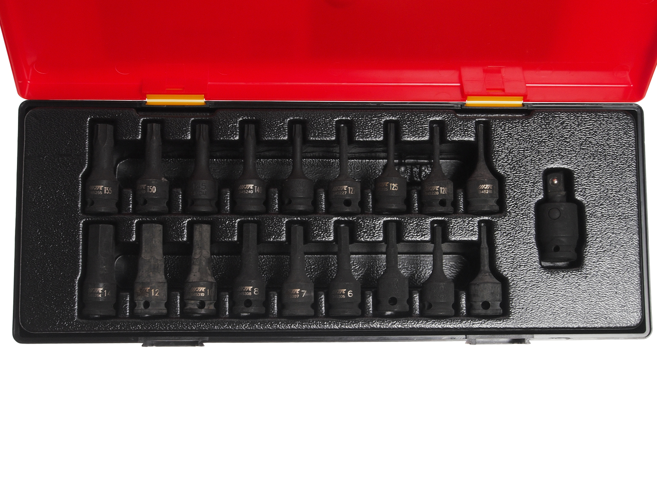 Артикулы JTC-345215-55: ударные головки с насадкой TORX 3/8": Т15, Т20, Т25, Т27, Т30, Т40, Т45, Т50, Т55 - 9 шт.