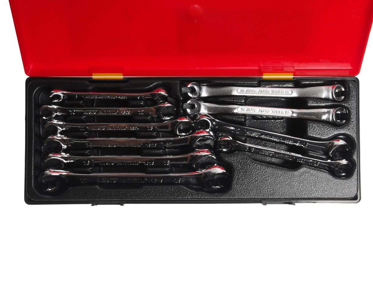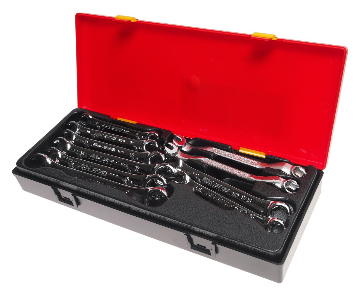 Артикулы JTC-1018-1826: ключ разрезной: 8х9, 10х12, 11х13, 14х17, 16х18, 17х19 мм., 3/8"х7/16", 1/2"х 9/16" — 8 шт.