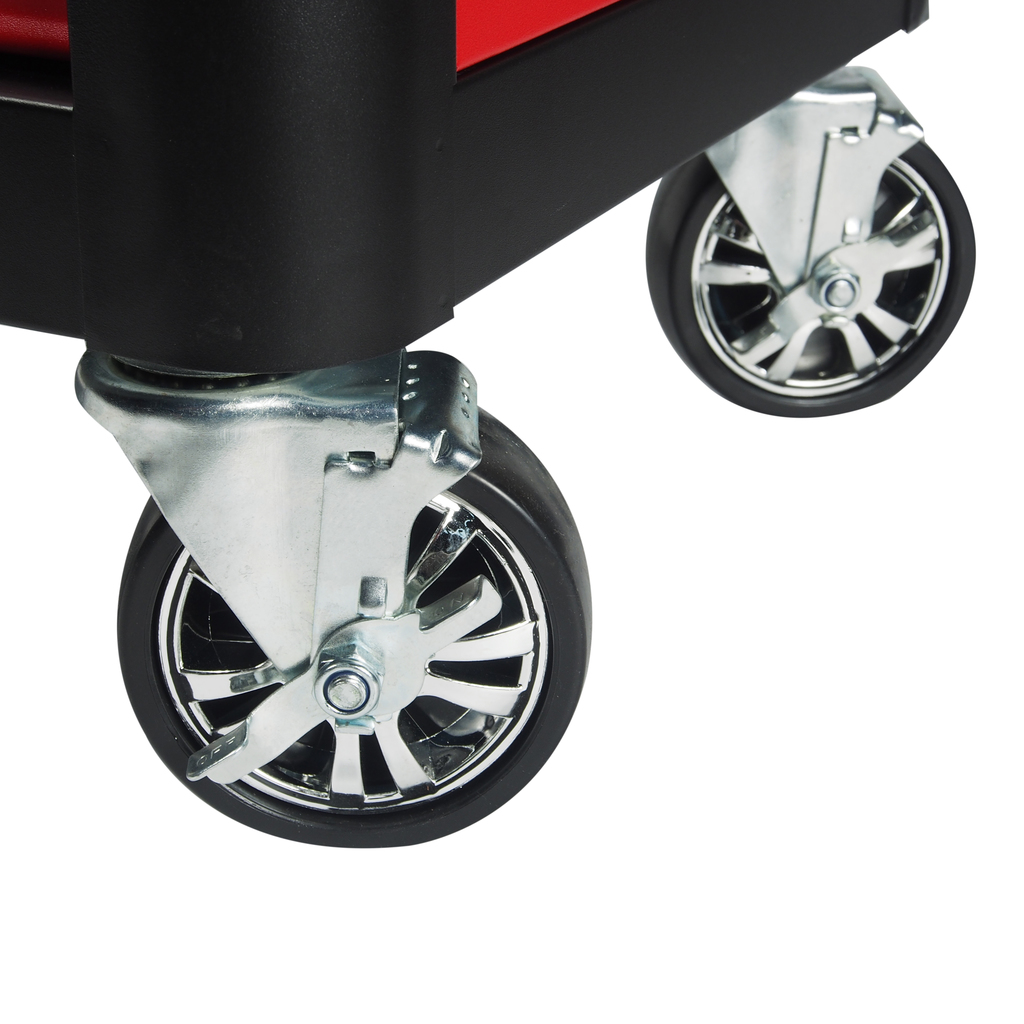 Корпус тележки оснащен защитными бортами, что сводит к минимуму риск повреждения оборудования и нанесение травм автомеханикам во время перемещения по СТО.