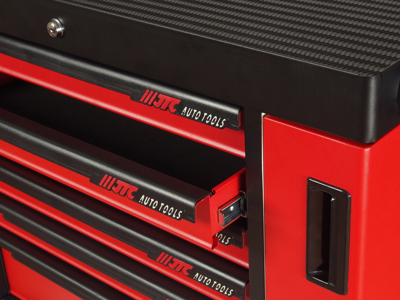 Перфорированные внутренние стенки боковых ящиков с квадратными отверстиями предоставляют возможность разместить дополнительные аксессуары для хранения инструментов. Применяется с серией подвесных приспособлений JTC-3218.