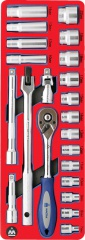 • Вороток реверсивный (трещотка) с флажком, 45 зубцов и кнопка быстрого сброса 3/8" 200 мм.