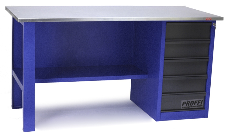- Наличие открытой полки позволяет иметь под рукой необходимый инструмент, а тумба с пятью ящиками, которые закрываются на центральный замок, позволяет хранить в них важную документацию.