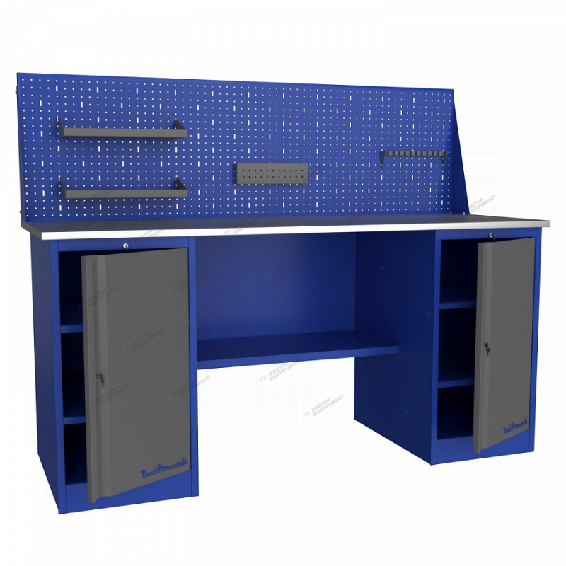 Верстак оборудован двумя тумбами (2 тумбы с дверью (2 полки)), которые предназначены для хранения инструментов и документации.