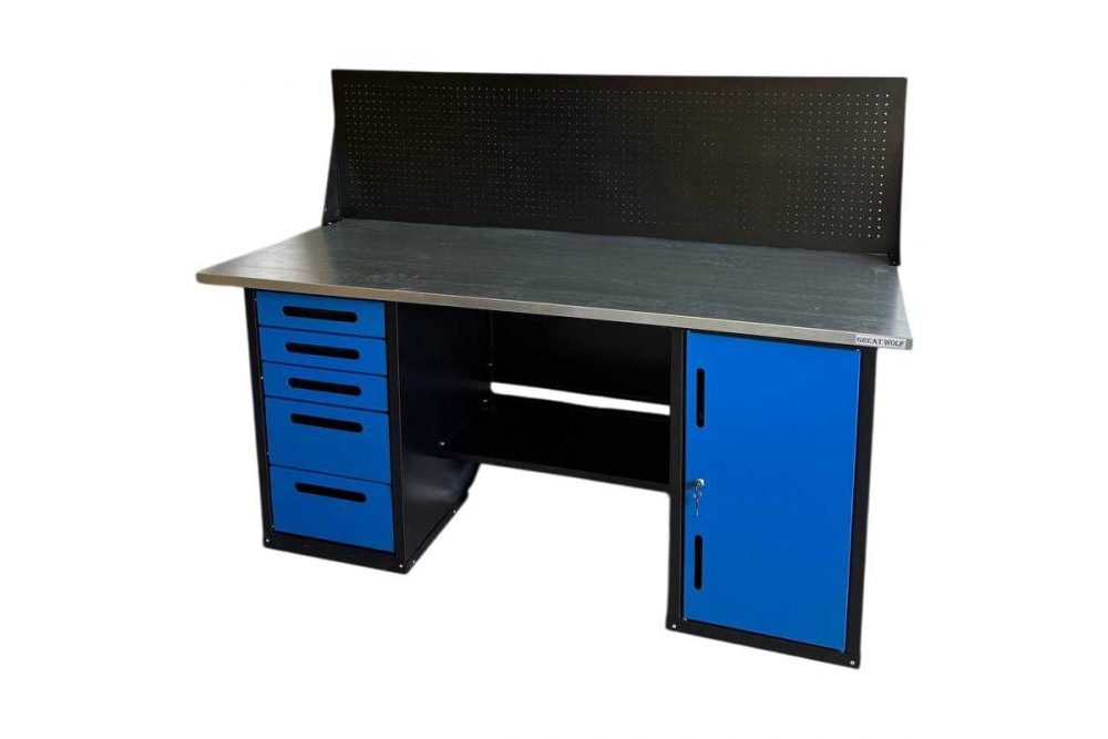 Great Wolf GWT-V1800BL4 — двухтумбовый стол-верстак, созданный для профессиональных и домашних мастерских. Он обеспечивает удобство, порядок и надежность при выполнении любых задач.