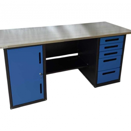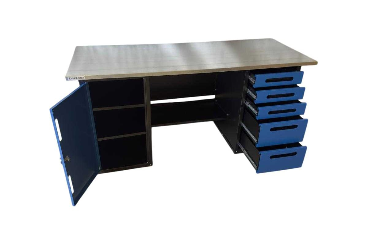 - Тумба с 5 ящиками (2 высоких, 3 низких) — для хранения инструментов, мелких деталей и расходных материалов.