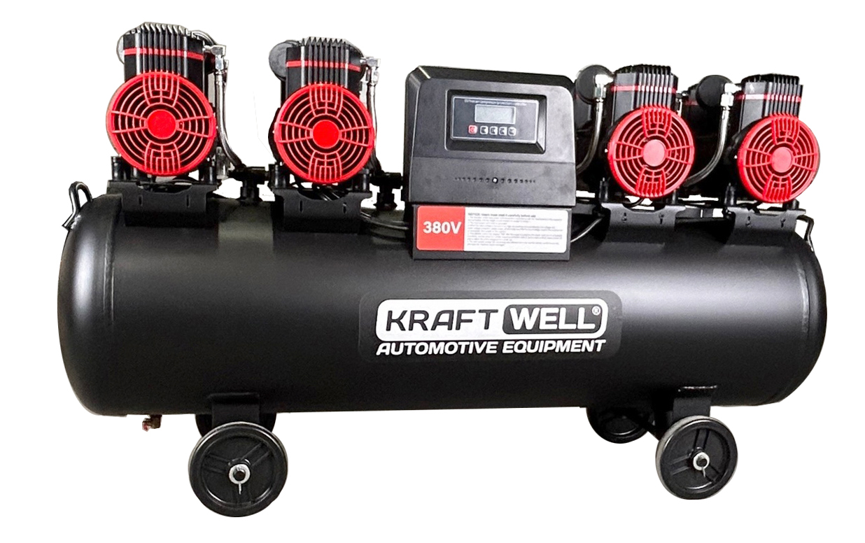 Компрессор поршневой безмасляный KraftWell KRW-AC1000-120L предназначен для подачи сжатого воздуха в промышленных и сервисных условиях. Устройство работает от трехфазной сети 380 В и обеспечивает производительность до 1000 л/мин при максимальном давлении 10 бар. В комплекте установлен ресивер объемом 120 литров, что позволяет поддерживать стабильное давление и снижать частоту запусков компрессора.