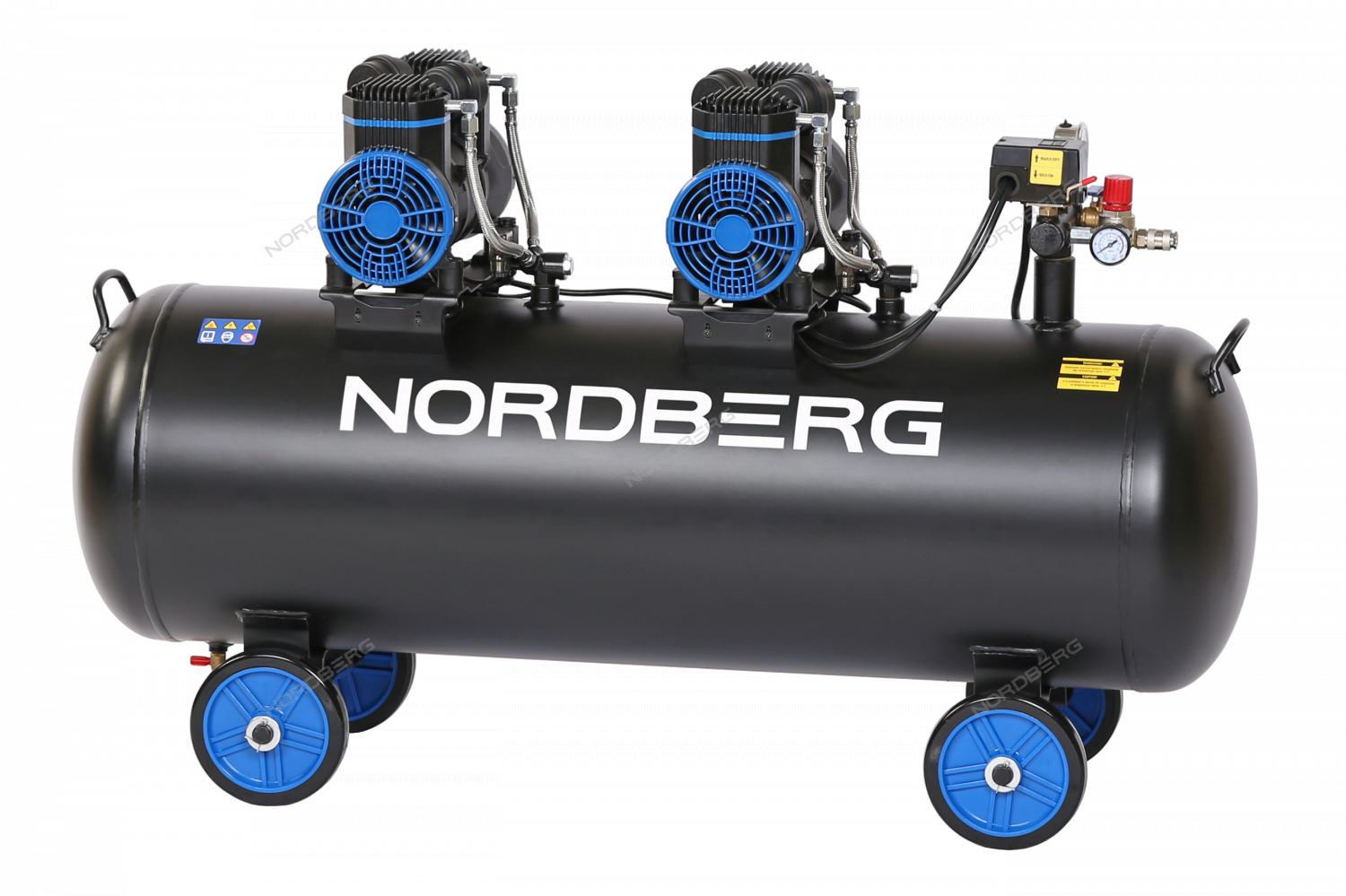 Безмасляный компрессор – отличное решение для применения с краскопультами, продувочными пистолетами и прочим оборудованием. При его использовании нет необходимости устанавливать дополнительные фильтры в воздушную магистраль для улавливания масляной взвеси, в отличие от масляных компрессоров, в результате работы которых на внутренних поверхностях магистралей, шлангов и оборудования могут откладываться продукты разложения масла, уменьшающие пропускную способность и производительность компрессора.В конструкции поршневых групп безмасляных компрессоров NORDBERG используются тефлоновые поршневые кольца с низким коэффициентом трения и высокой стойкостью к износу. За счёт этого температура в цилиндрах и головке цилиндра, всегда остаётся на приемлемом уровне, что позволяет компрессору работать без остановки более продолжительное время по сравнению с другими типами поршневых компрессоров. Компрессор позволяет запускать компрессорные группы как вместе, так и по раздельно, для получения необходимых параметров производительности.