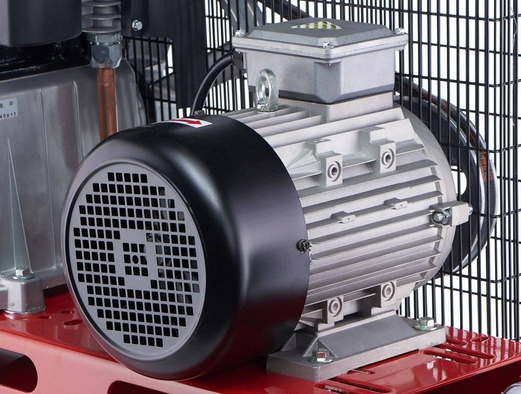 Данная модель имеет транспортировочные колеса и рукоятку из трубчатого металла для свободного перемещения по площадке. Двигатель компрессора защищен от попадания инородных предметов специальной решеткой, что продлевает срок его службы.Ременной привод устройства обеспечивает плавный пуск компрессора, что снижает нагрузку на агрегат и увеличивает его долговечность.