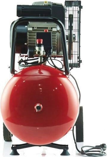 Данная модель имеет транспортировочные колеса и рукоятку из трубчатого металла для свободного перемещения по площадке. Двигатель компрессора защищен от попадания инородных предметов специальной решеткой, что продлевает срок его службы.