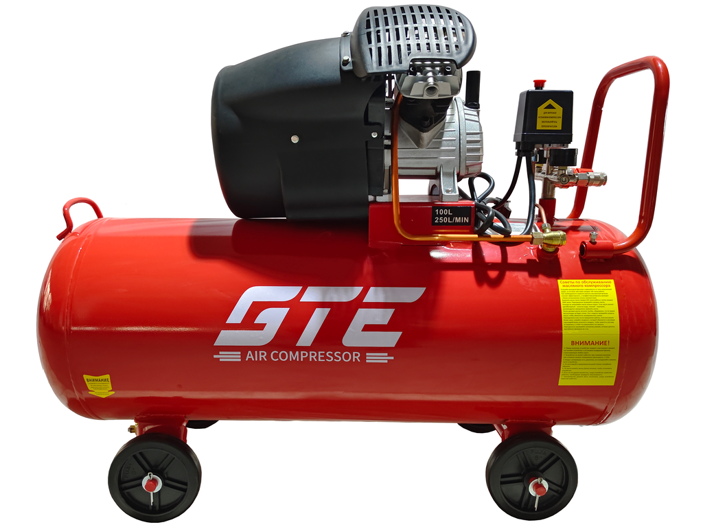 —Компрессор пневматический 220В 2.2кВт 8атм. 250л/мин. ресивер-100л поршн. с прям. прив. V-образ. GTE