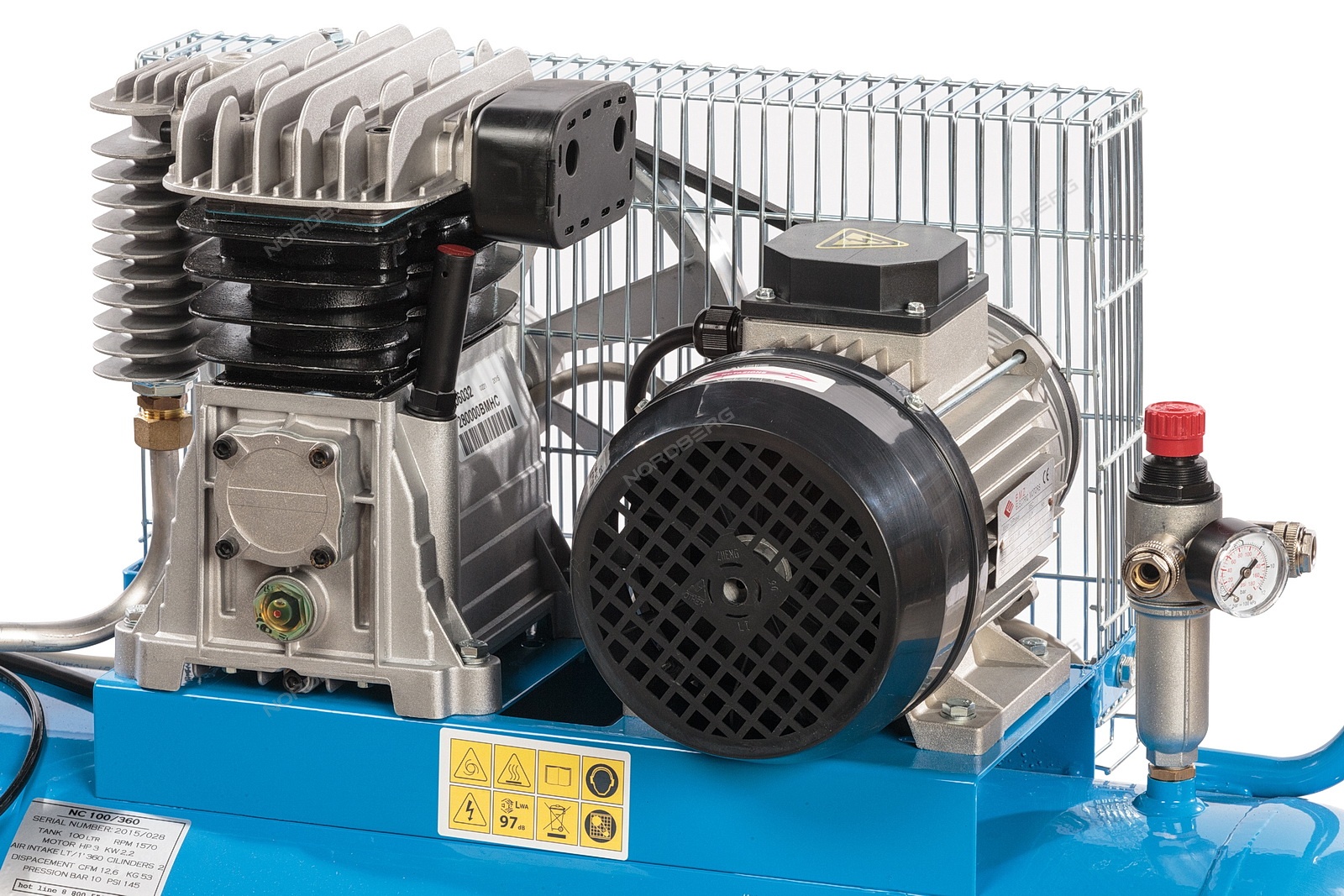 Описание NC100/360 NORDBERG Компрессор поршневой с ременным приводом: