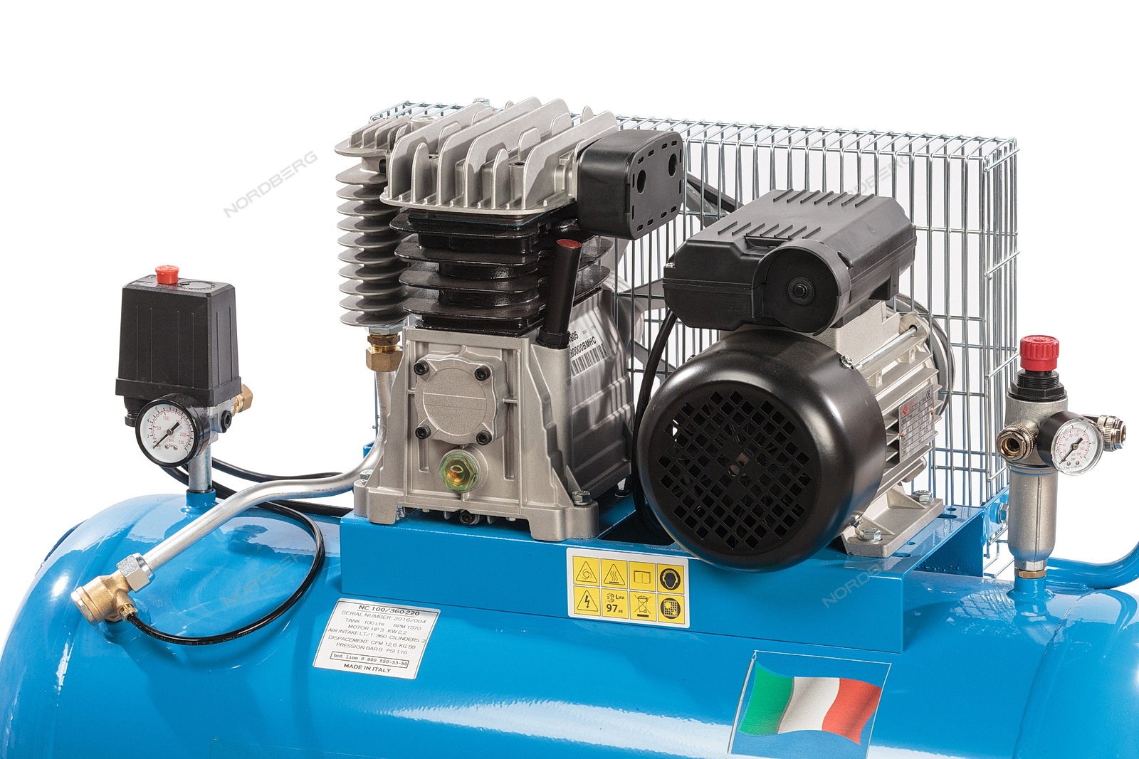 Описание NC100/360_220 NORDBERG Компрессор поршневой с ременным приводом, объем 100 л: