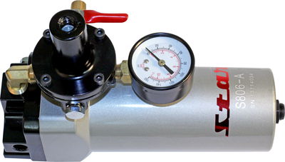 Фильтр — влагомаслоотделитель с манометром и регулятором давления (редуктором). Очищает сжатый воздух от масла, воды и частиц пыли размером 5 мкм. Применяется для работы пневмоинструмента и окрасочного оборудования.