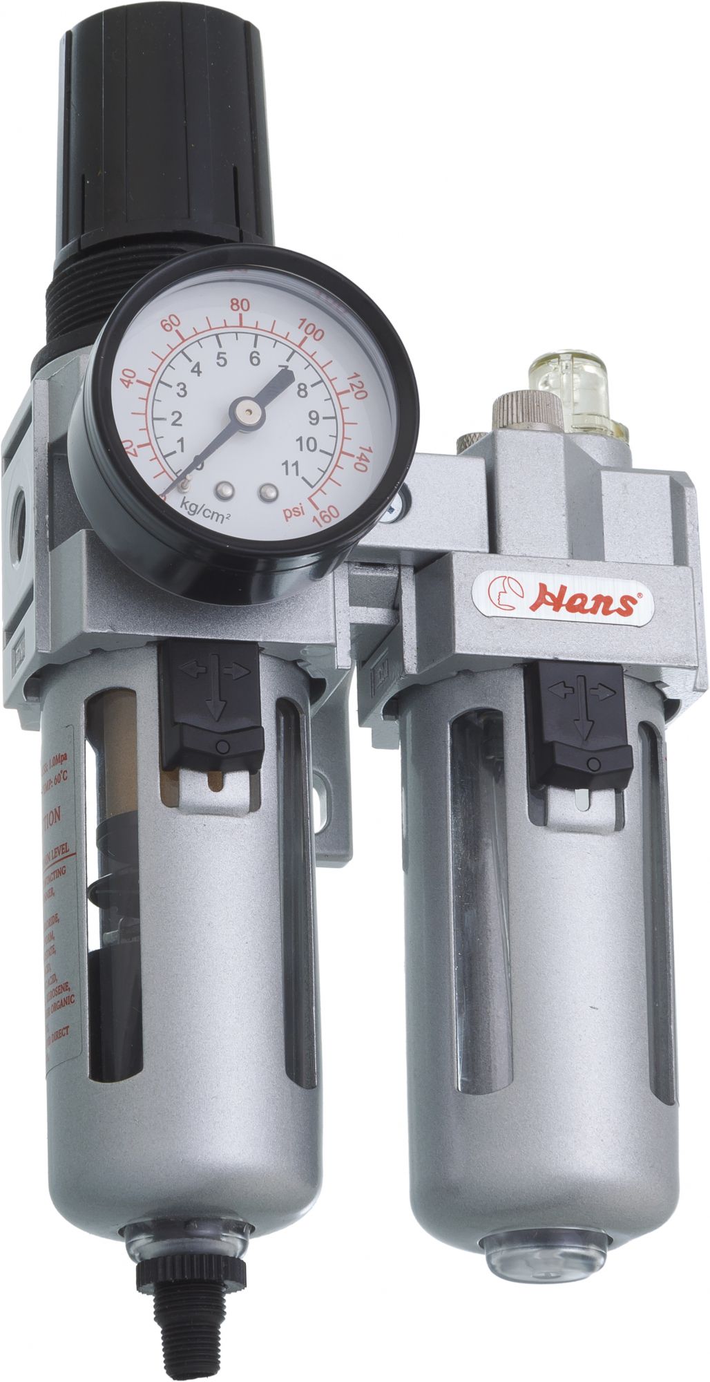 Посадочный квадрат - 1/4'  Рабочее давление, bar - 1,5-9,0  MAX давление, bar - 10,0  Объем колбы регулятора, см3 - 40  Объем колбы лубрикатора, см3 - 75  Вес, г - 980      *Быстрая и надежная фиксация для  удобства  установки и использования  *Высокая точность и надежность контроля регулировки давления  *Эффективная очистка от  влаги и твердых частиц  *Лубрикатор продлевает срок службы пневмодвигателя почти в три раза  *Корпус из алюминиевого сплава  *Комплектуются латунными фитингами