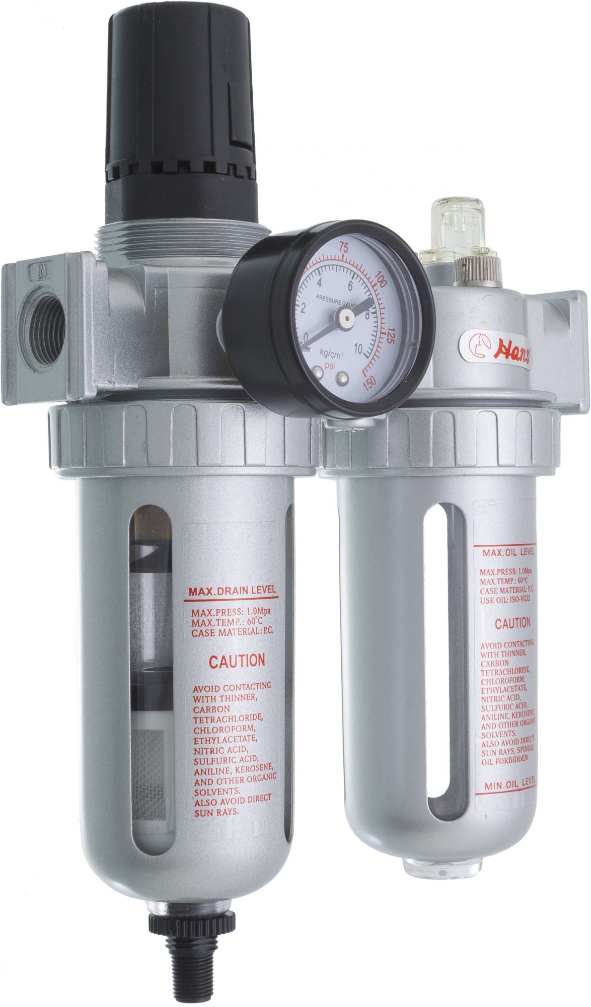 Посадочный квадрат - 3/8'  Рабочее давление, bar - 1,5-9,0  MAX давление, bar - 10,0  Объем колбы регулятора, см3 - 80  Объем колбы лубрикатора, см3 - 160  Вес, г - 1950    *Быстрая и надежная фиксация для  удобства  установки и использования  *Высокая точность и надежность контроля регулировки давления  *Эффективная очистка от  влаги и твердых частиц  *Лубрикатор продлевает срок службы пневмодвигателя почти в три раза  *Корпус из алюминиевого сплава  *Комплектуются латунными фитингами