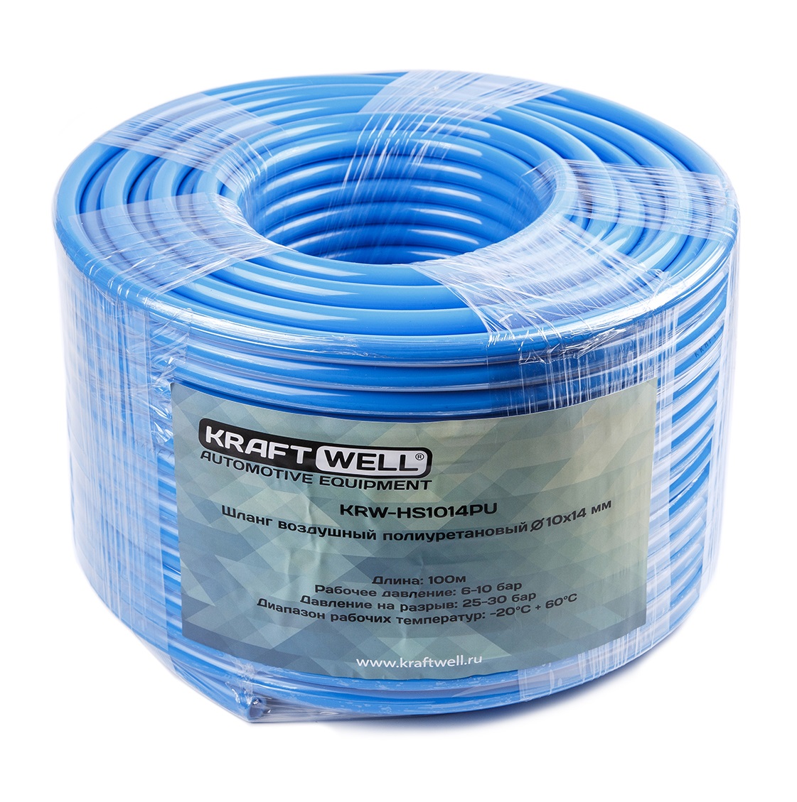 Полиуретановый воздушный шланг KraftWell KRW-HS1014PU поставляется на катушке и предназначен для перекачки сжатого воздуха. Общая длина рулона — 100 метров. Наружный диаметр шланга составляет 14 мм, внутренний — 10 мм (D10×14 мм). Цена указана за полный рулон длиной 100 метров.