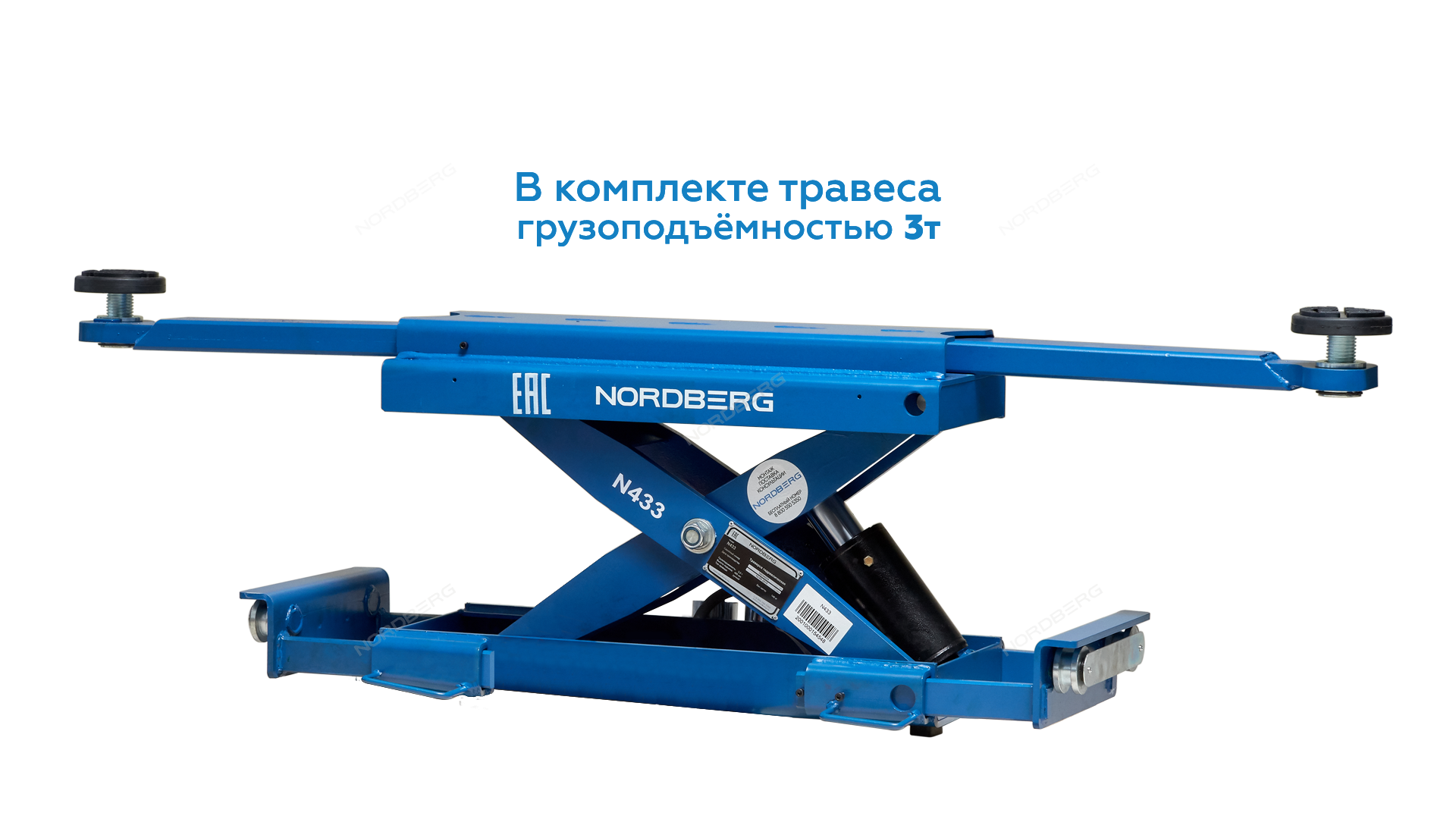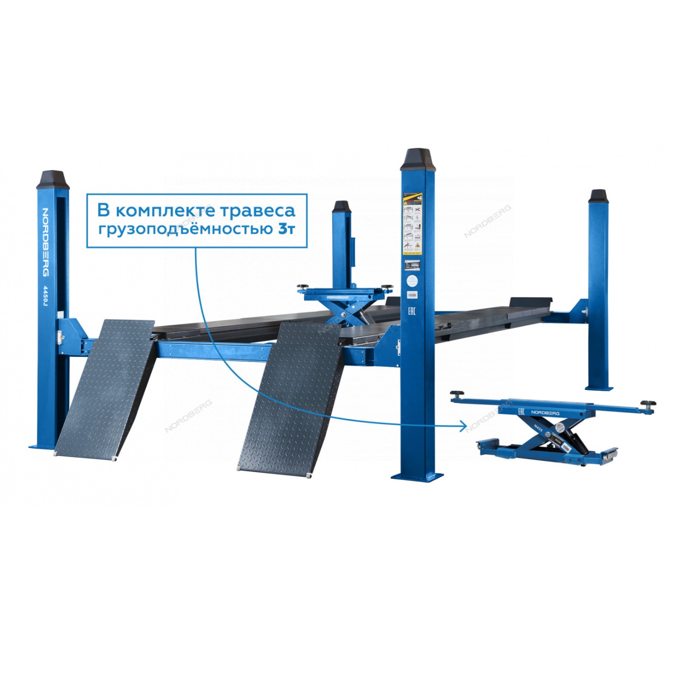 Надежный слесарный подъемник с увеличенной грузоподъемностью и удлиненной платформой NORDBERG 4450_MB(Pwr) для сход-развала, c траверсой от гидростанции 3 т