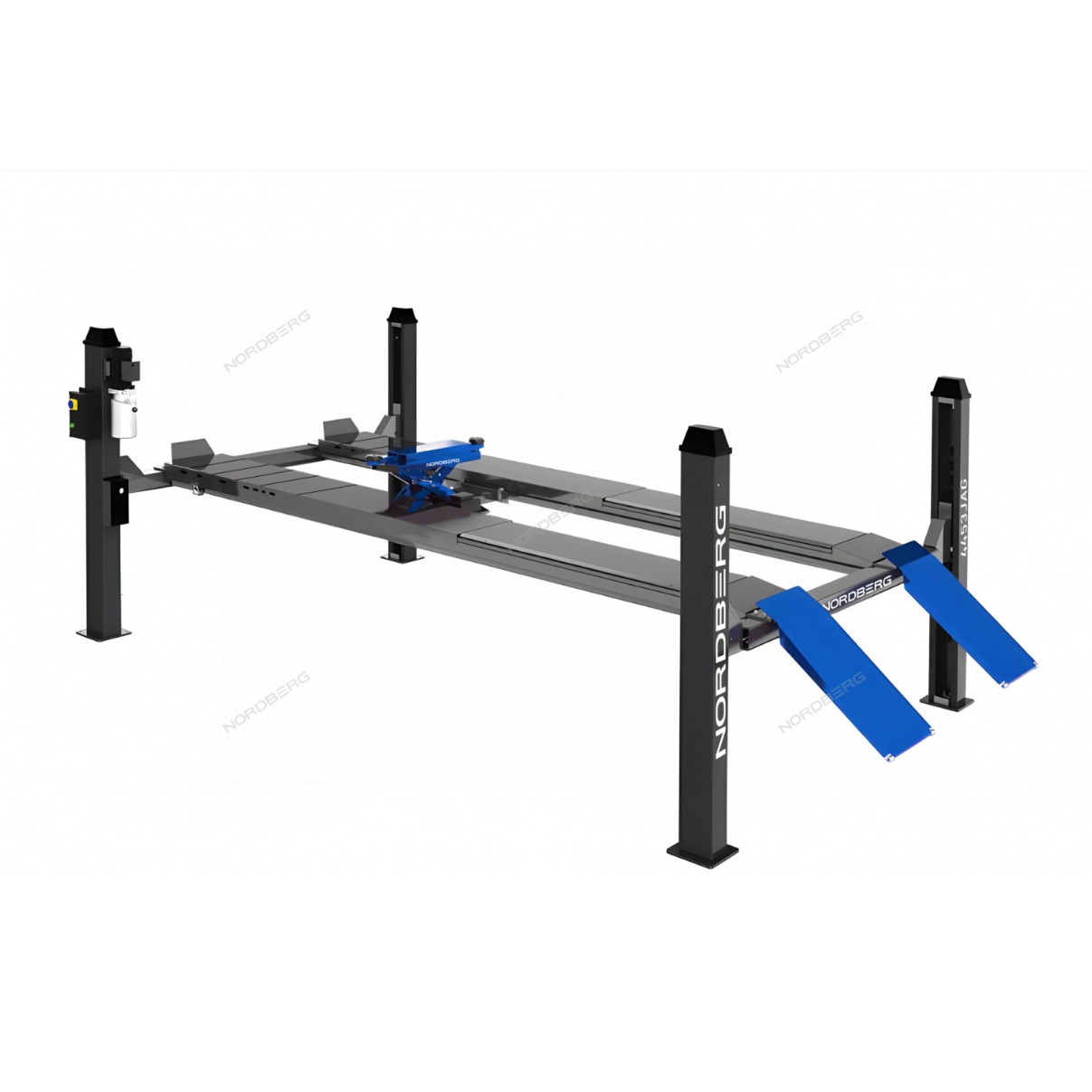 Четырехстоечный подъемник для сход-развала NORDBERG 4453JAG – профессиональное оборудование для обслуживания легкового, коммерческого и грузового транспорта в автосервисных мастерских и СТО.