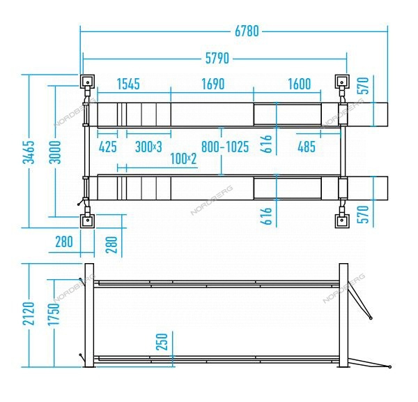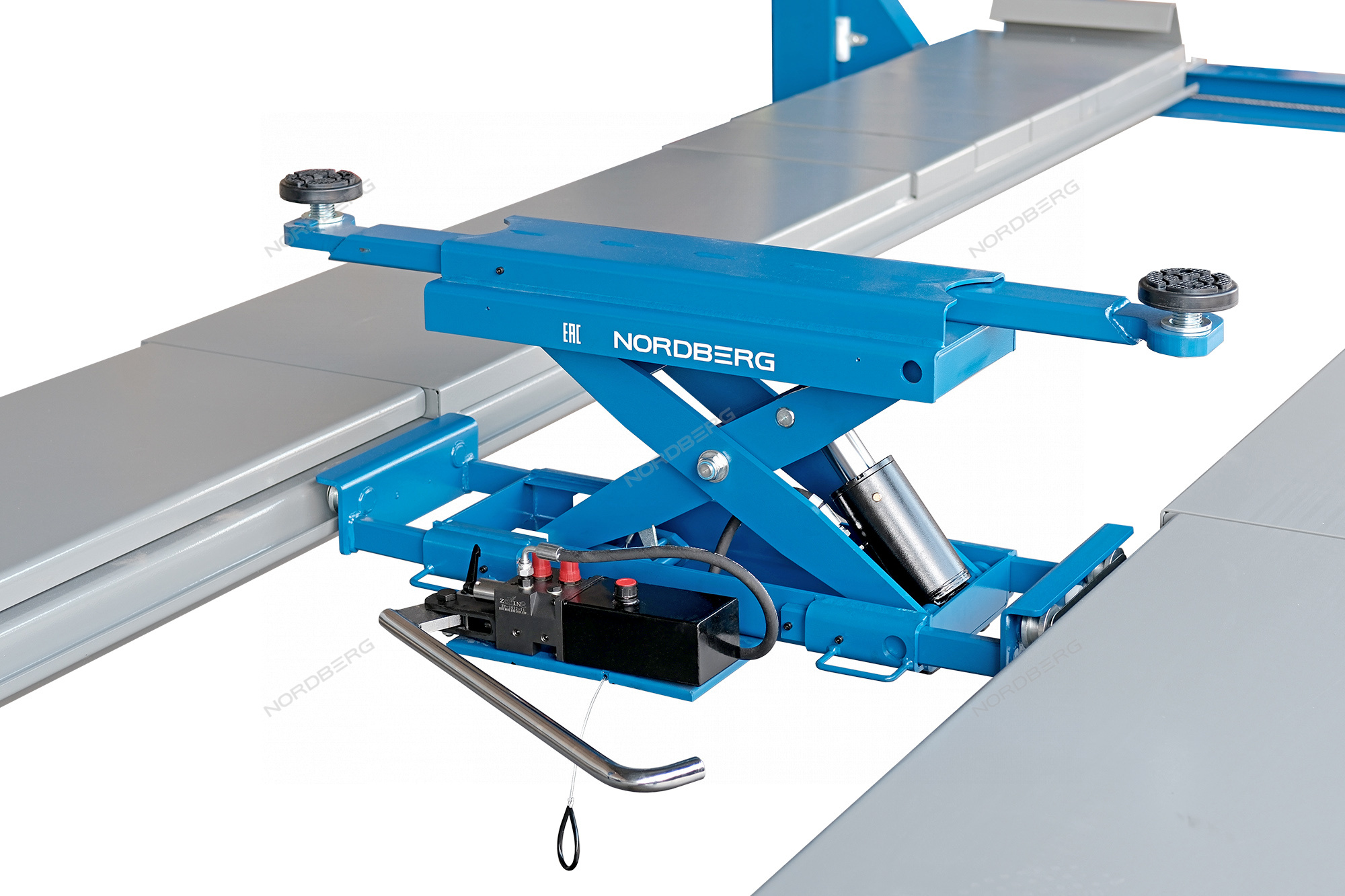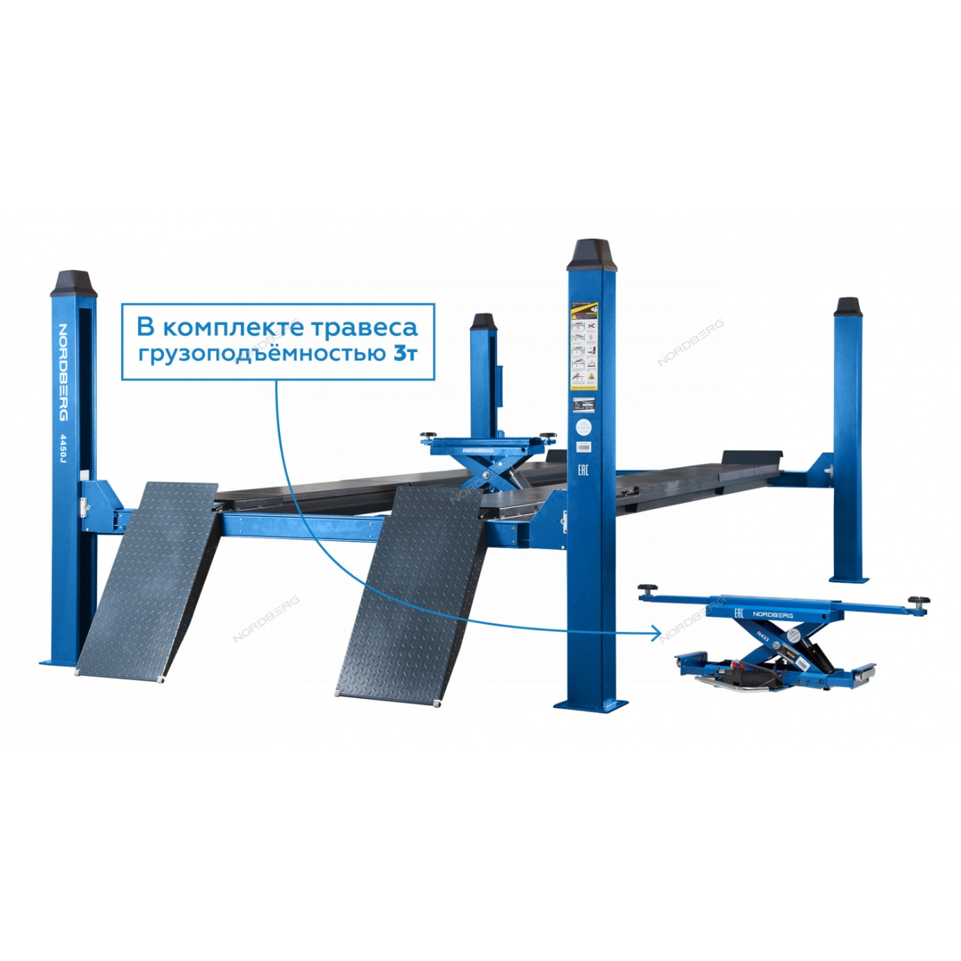 4450J-AB(M) NORDBERG Подъемник 4-стоечный 5 т, c ручной траверсой 3 т N433, для сход-развала, пневмостопоры, 380 В, синий