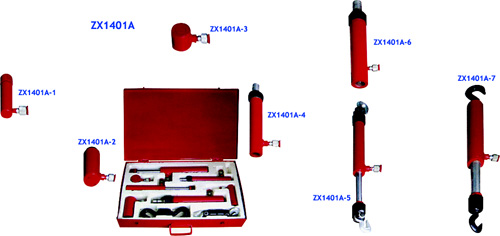 Гидроцилиндры прямые: ZX1401А-1 Гидроцилиндр усилие: 2,0 тн., Мин. рабочая дистанция: 126мм, ход штока: 73мм; ZX1401А-2 Гидроцилиндр усилие: 10,0 тн., Мин. рабочая дистанция: 118мм, ход штока: 58мм; ZX1401А-3 Гидроцилиндр усилие: 4,0 тн., Мин. рабочая дистанция: 40мм, ход штока: 18мм; ZX1401А-3 Гидроцилиндр усилие: 4,0 тн., Мин. рабочая дистанция: 270мм, ход штока: 125мм; ZX1401А-6 Гидроцилиндр усилие: 10,0 тн., Мин. рабочая дистанция: 358мм, ход штока: 135мм; Гидроцилиндры для стягивания, «обратные»: ZX1401А-5 Гидроцилиндр «обратный», усилие: 2,0 тн., Мин. рабочая дистанция: 575мм, ход штока: 120мм; ZX1401А-7 Гидроцилиндр «обратный», усилие: 5,0 тн., Мин. рабочая дистанция: 665мм, ход штока: 130мм.