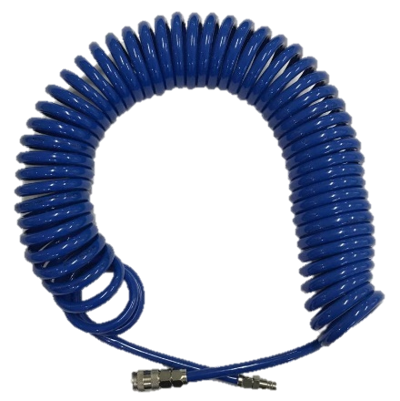 PUR-1009M — пневмошланг витой из полиуретана, предназначенный для использования в системах пневматического оборудования. Длина шланга составляет 15 метров. В комплектацию входят резьбовой штуцер и быстросъемное соединение, что обеспечивает удобство подключения и отключения оборудования.