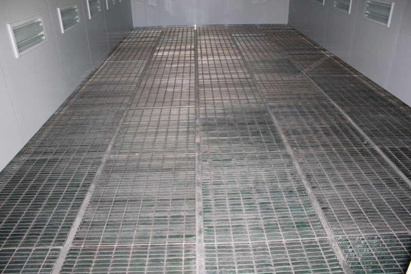 Металлическое высотой 300 мм, усилено балками, оцинкованные решетки по всей поверхности + воздухораспределительные пластины под каждой решеткой, без рамп