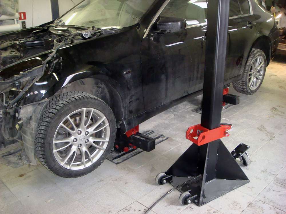 Благодаря тому, что высота порогов закреплённого автомобиля на стенде составляет 380 мм, возможно проведение работ с днищем автомобиля, на данном стенде можно выправлять любые удары — от легких вмятин до сильных винтообразных искривлений. Это позволяет быстрее окупить ее и сделать участок прибыльным.