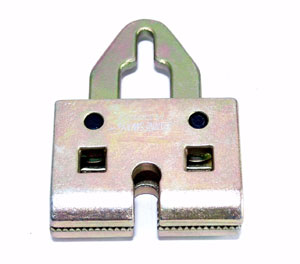 Специальный зажим с длиной захватной части 120 мм, применяемый для захвата и удержания плоских, тонких кузовных деталей при проведении стапельного кузовного ремонта. Конструкция изделия позволяет передавать большое, до 5 тонн тяговое усилие в продольном направлении и до 3 тонн, в поперечном. Допускается совмещение направлений тяговых усилий с ограничением до 3 тонн.
