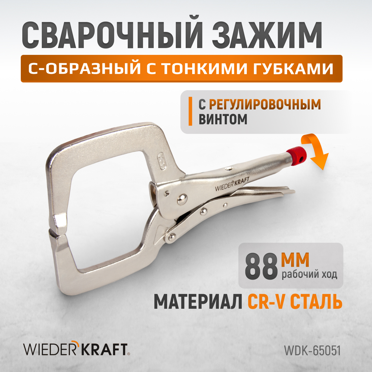 —WDK-65051 Зажим сварочный С-образный с фиксатором. Струбцины сварочные. (368х177х30 мм)