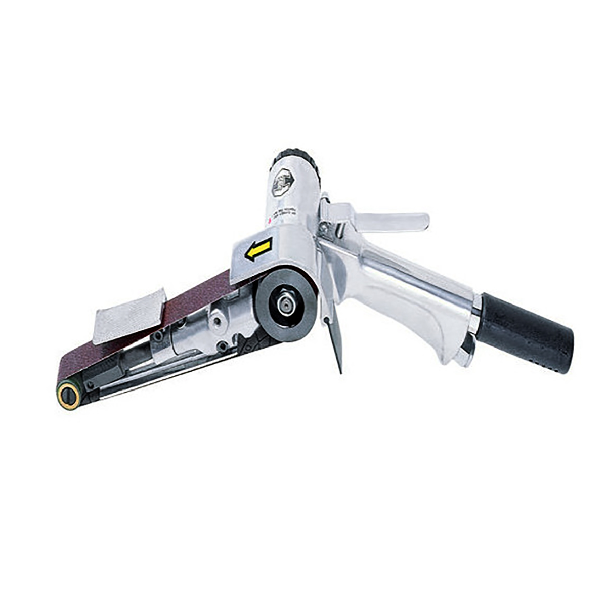 Пневматическая ленточная шлифовальная машинка - пневмонапильник. Машинка рассчитана на работу одной рукой. Корпус ручки и напильника изготовлен из полированного металла. Эффективно подходит для выполнения производственных работ по зачистке и шлифовке деталей, обработке торцов и кромок, при больших объемах работ. Используются шлифовальные ленты размером 20х520 мм. Возможность менять угол положения корпуса привода ленты к корпусу машинки дает возможность выбора оптимального положения при шлифовке. Выход отработанного воздуха назад. Эффективный глушитель уменьшает уровень шума при работе.