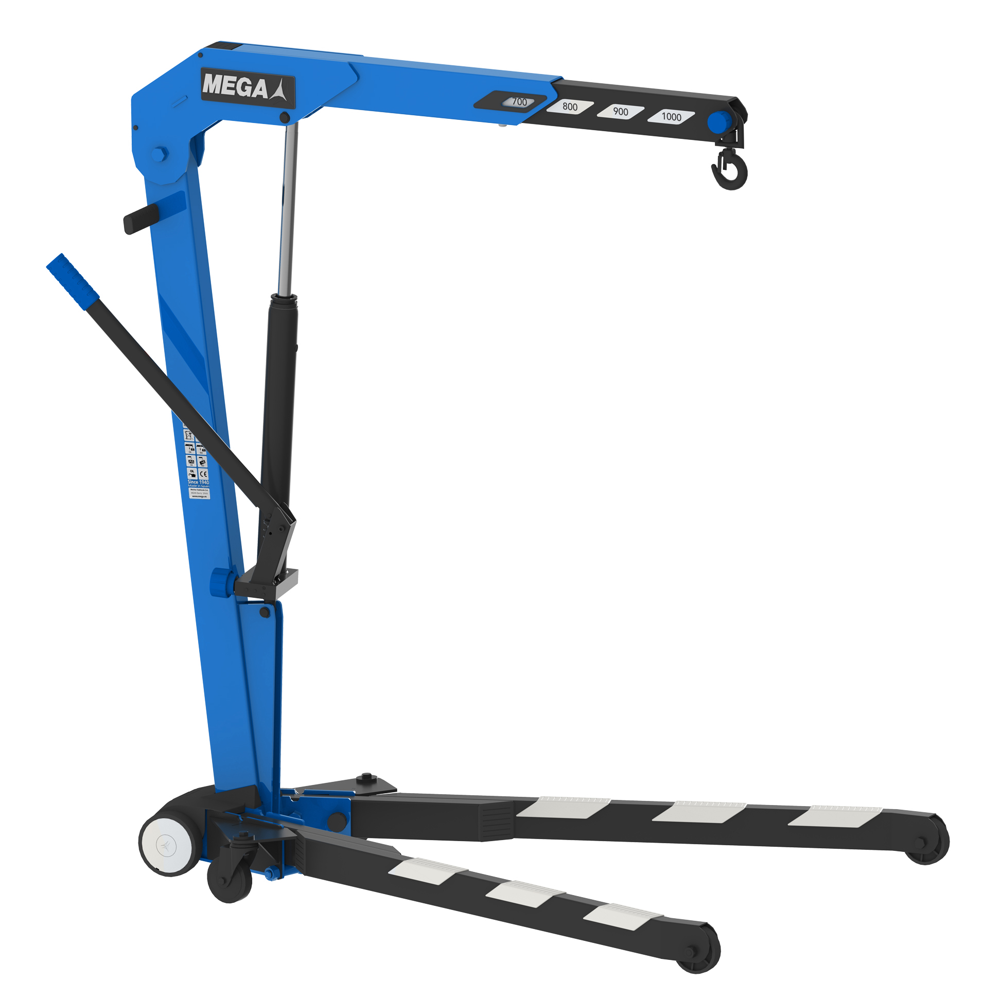 Кран складной гидравлический MEGA CRV10 предназначен для подъёма и перемещения грузов массой до 1000 кг. Конструкция типа «гусь» обеспечивает устойчивость при работе с тяжёлыми нагрузками. Оборудование однотактное, складной — удобно в транспортировке и хранении.