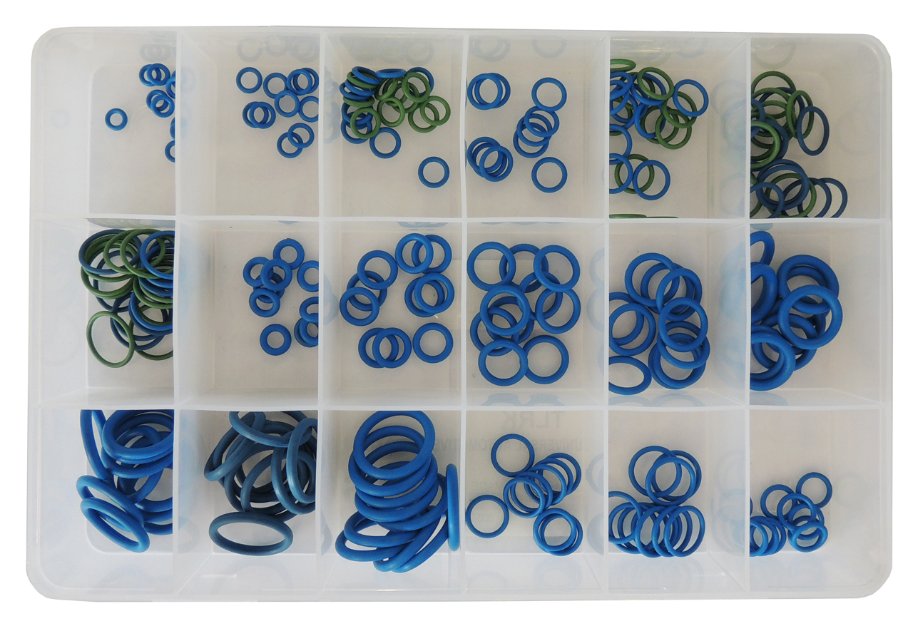 Уплотнительные кольца для фитингов кондиционера применяются, чтобы исключить возможность утечки фреона в местах креплений сети. В процессе эксплуатации автомобильного кондиционера требуется применять особые фреоностойкие и маслостойкие кольца. При ремонте прибора рекомендуется использовать кольца зарубежных производителей, которые изготавливаются из особой резины. При ремонте автомобильного кондиционера рекомендуется располагать полным комплектом колец различного размера и диаметра.
