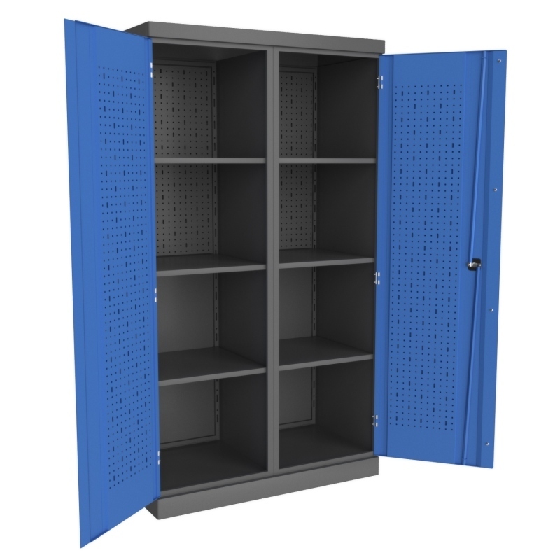 Шкаф инструментальный серии «PROFFI» предназначен для хранения оснастки, приспособлений и инструмента на рабочих местах в мастерских, цехах и других производственных зонах. Шкаф изготовлен из листовой стали и обеспечивает надежное запирание дверей ригельной системой.