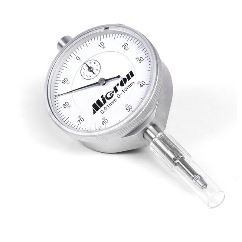 Индикатор часового типа ИЧ предназначен для измерения линейных размеров абсолютным и относительным методами, определения величины отклонений от заданной геометрической формы и взаимного расположения поверхностей. Применяется в машиностроении, приборостроении и других отраслях промышленности. Тип ИЧ характеризуется перемещением измерительного стержня параллельно плоскости расположения шкалы. Большинство моделей являются многооборотными – имеют большую круговую шкалу и малую, которая отвечает за количество полных оборотов большой шкалы, то есть фиксирует количество целых миллиметров. Принцип работы прибора основан на преобразовании возвратно-поступательного движения измерительного стрежня во вращательные движения стрелки индикатора, что осуществляется за счет реечно-зубчатой и шестереночной передачи. Крепление индикатора ИЧ возможно за присоединительную гильзу либо за ушко с присоединительным отверстием. Индикатор выполнен из закаленной стали, измерительная поверхность покрыта твердым сплавом.
