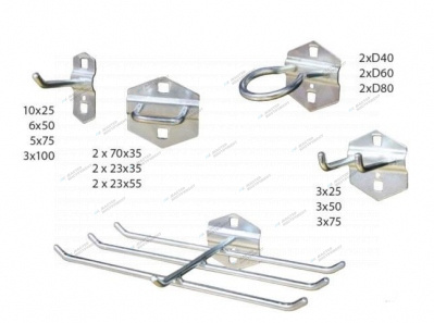 Набор крючков для перфорированной панели, 46 предметов, бренда Верстакофф. Предназначен для организации хранения и размещения инструментов на перфорационных (сотовых) панелях. В комплект входят разнообразные типы крючков, обеспечивающие гибкую систему крепления.