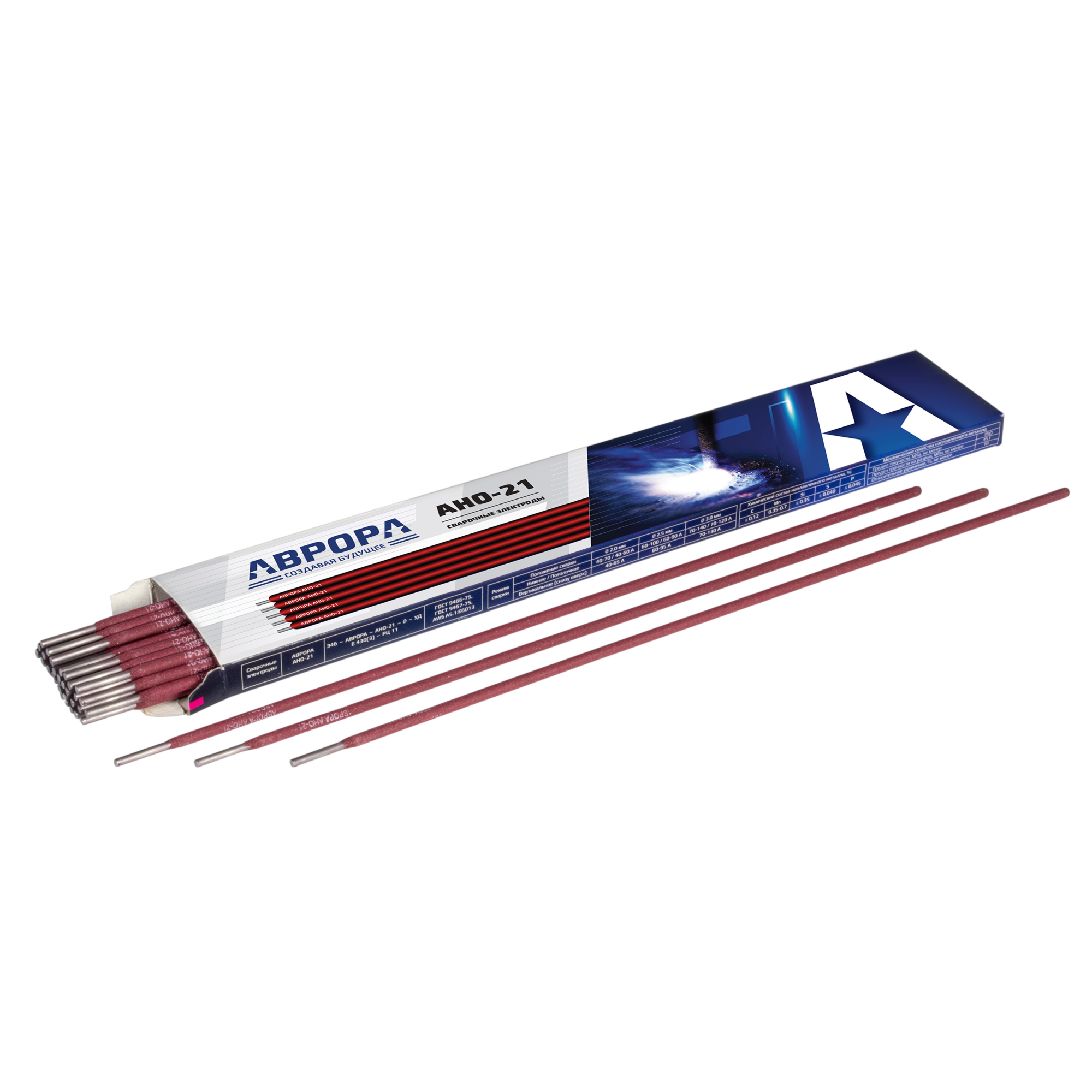 АНО-21 – электроды с рутил-целлюлозным покрытием для ручной дуговой сварки. Предназначены для работы с рядовыми и ответственными конструкциями из углеродистых сталей в соответствии с ГОСТ 380-2005. Подходят для работы со сталями марок Ст0, Ст1, Ст2, Ст3, всех групп и степеней раскисления.