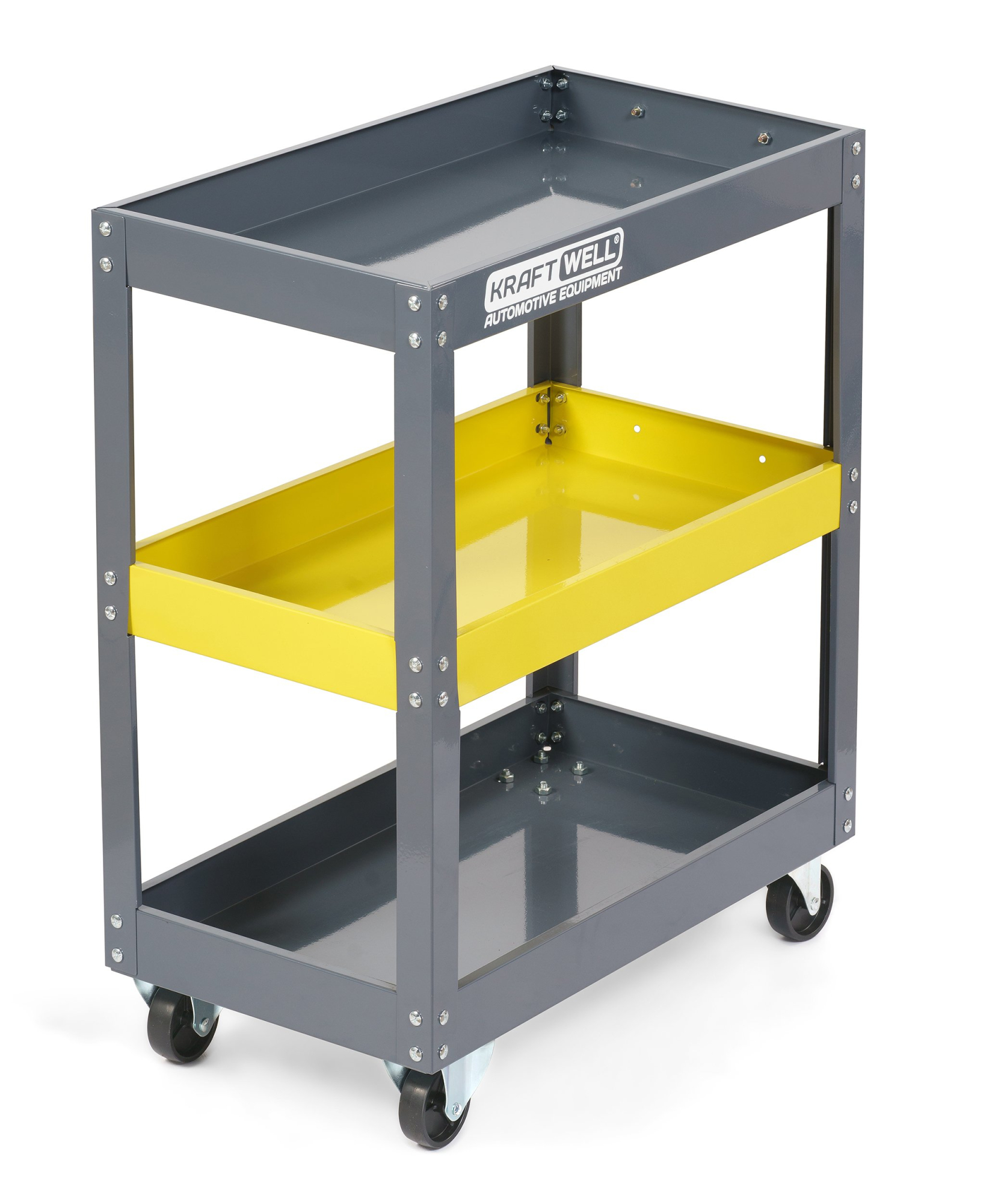 KraftWell KRW-T3GL — тележка инструментальная с тремя открытыми полками. Предназначена для организации рабочего пространства и удобного размещения инструментов или оборудования. Конструкция обеспечивает доступ к размещённым предметам с разных сторон.