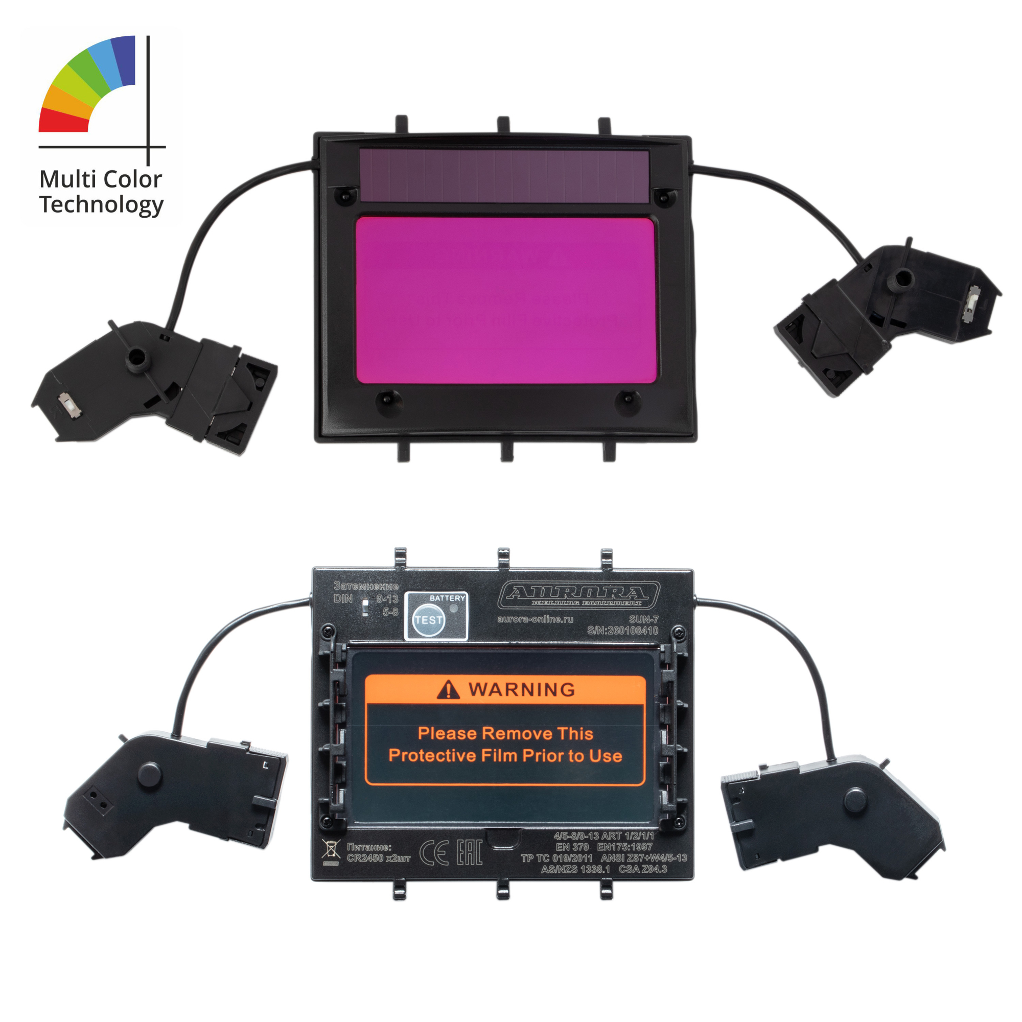 В отличие от многих конкурентов сварочные маски AURORA MULTI COLOR гарантируют надёжную защиту глаз сварщика не только от вредного воздействия ультрафиолета и инфракрасного излучения, но и от коротковолнового участка синего спектра, пропуская к глазам только безопасный синий с длинной волны 450-480nm.