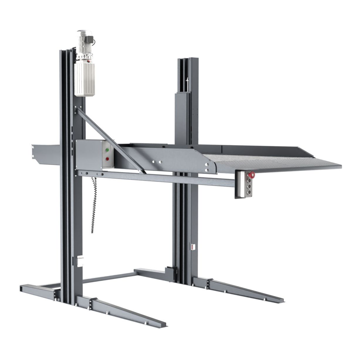 Подъемник управляется с пульта и оснащен электрической системой разблокировки. Особая конструкция колонн позволяет объединять вместе несколько подъемников.
