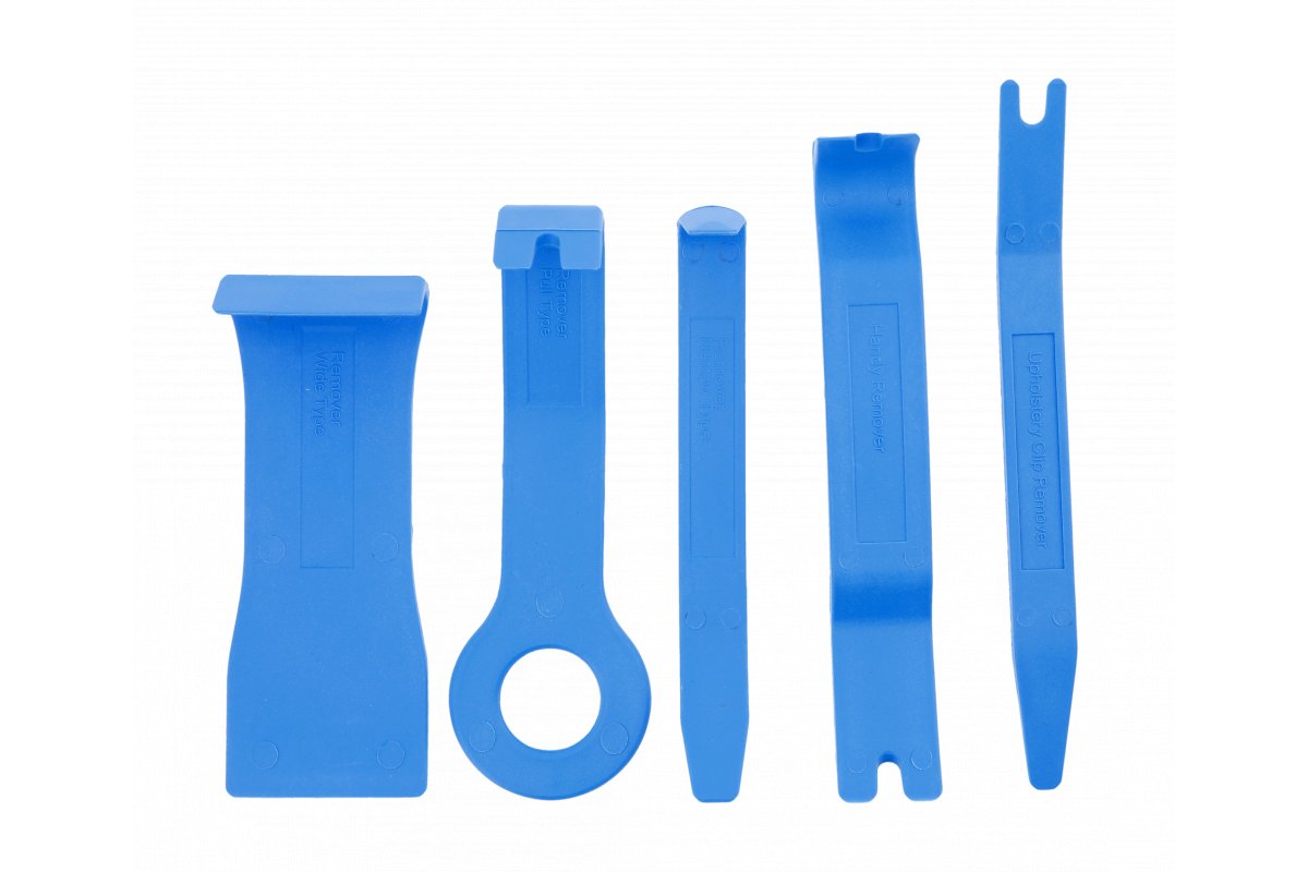 Набор съемников для обивки 5 шт от бренда HOEGERT предназначен для аккуратного демонтажа обивочных элементов, автомобильных скоб и реек. Инструменты в комплекте позволяют эффективно выполнять работы по разборке салона без повреждения деталей.