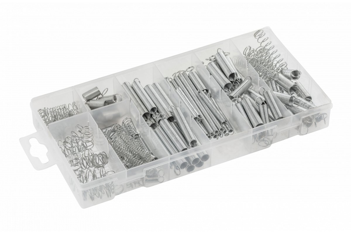 Набор стальных пружин широко используется в быту, мастерских, автомобильной промышленности и сервисах.