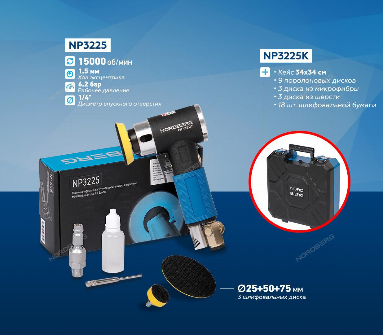 Пневмошлифмашинка угловая орбитальная, NORDBERG NP3222 предназначена для обработки поверхностей или удаления старых лакокрасочных покрытий. Диаметр шлифовального диска в 30 мм позволяет проводить работы в труднодоступных местах.